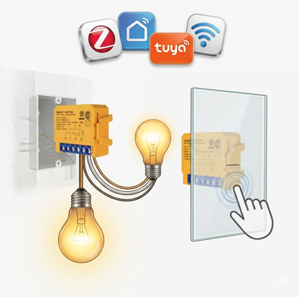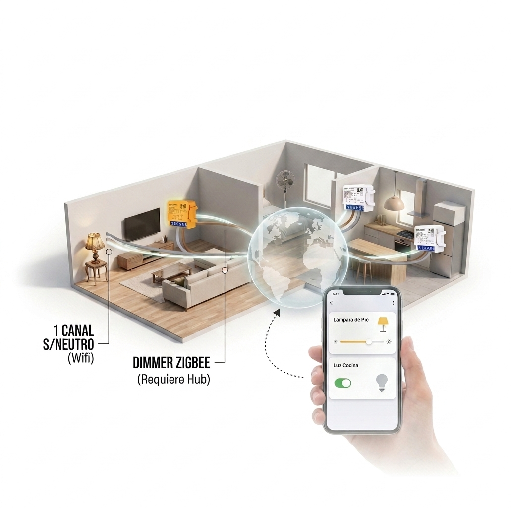 Hoy podés hacerlo usando switches inteligentes o teclas smart, tanto en WiFi como en Zigbee, sin romper paredes ni modificar la estética de tu casa.