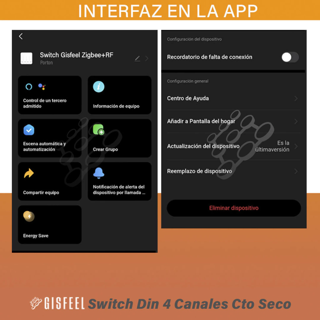 Switch Gisfeel Linea SDCS Zigbee + RF 4 Canales Gisfeel Contacto Seco para riel DIN