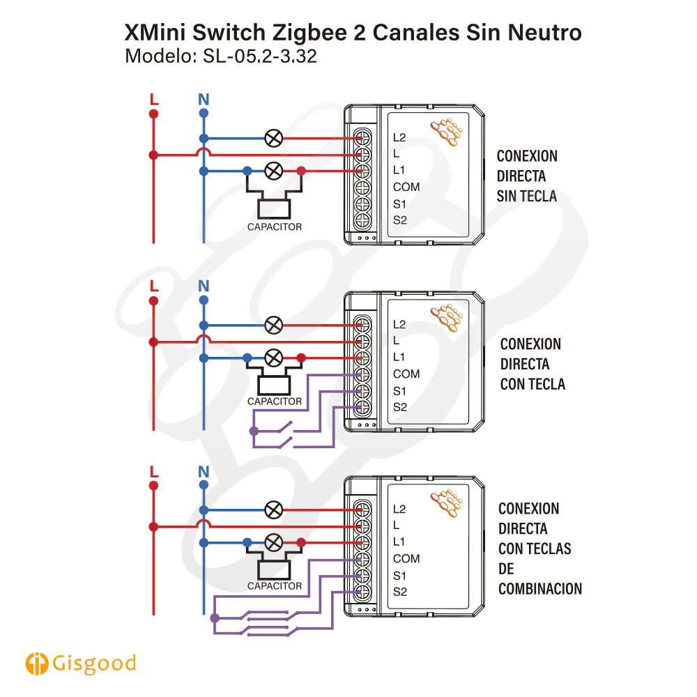 +++ Switch ZIGBEE 2 Canales Linea XMini Gisfeel sin Neutro +++